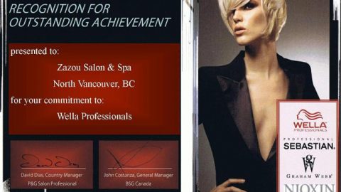 Zazou Salon & Spa have been recognized nationally by Wella Canada, an International Manufacturer, for outstanding achievement.